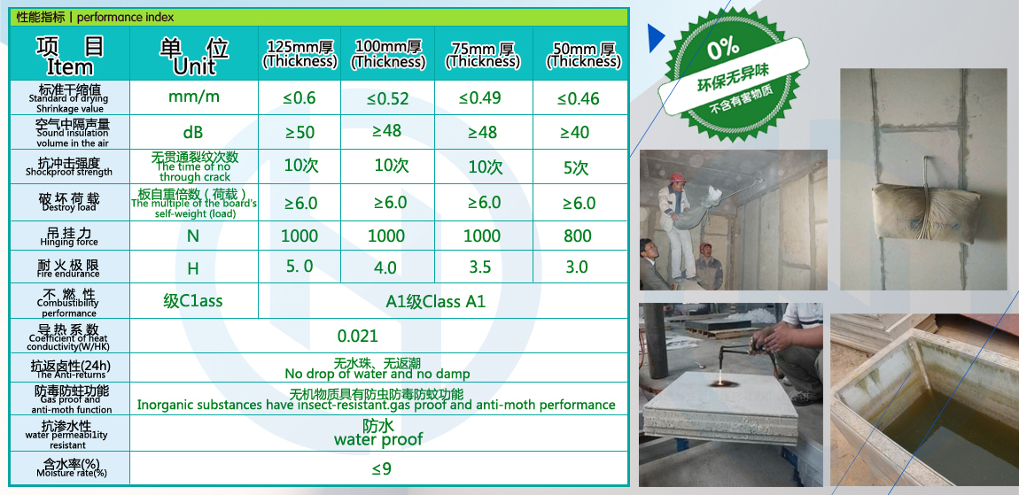 6、環(huán)保綠色:輕質(zhì)隔墻板所需原料為水泥和發(fā)泡劑,發(fā)泡劑大都接近中性,不含苯、甲醛等有害物質(zhì),避免了環(huán)境污染和消防隱患。