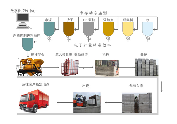 恒德輕質(zhì)隔墻板生產(chǎn)工藝流程圖