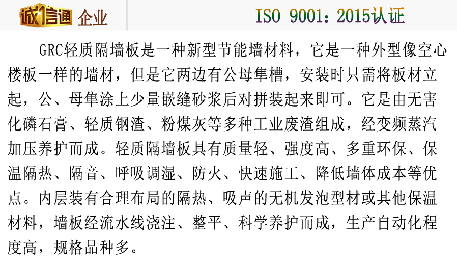 GRC多孔圓心輕質(zhì)復(fù)合隔墻板