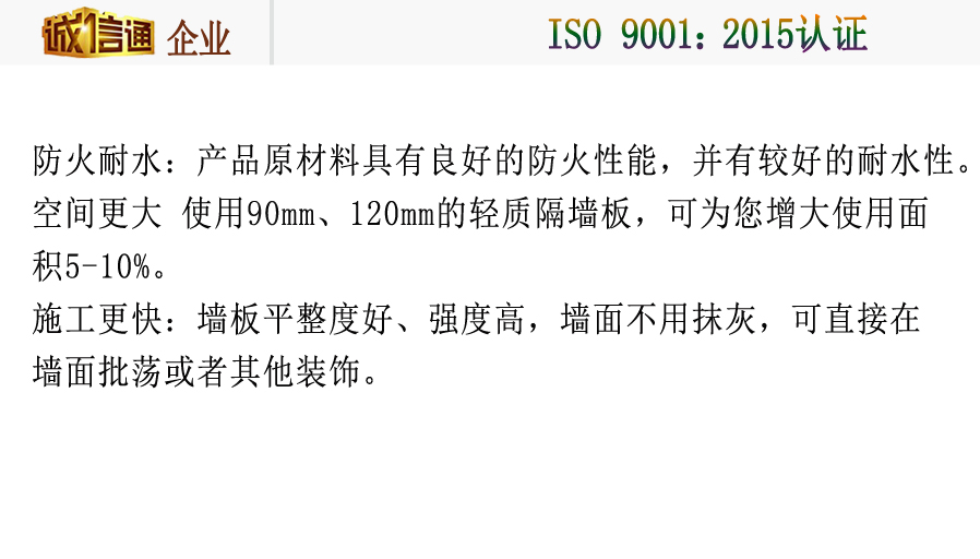 深圳恒德建筑科技有限公司工程安裝隔墻板能拼裝式快速施工,確保盡快投入使用;防火隔音,給用戶一個安全舒適的環(huán)境;墻板可隨意開槽鋪設(shè)電線;墻體更薄,增加場地的實(shí)際使用面積。